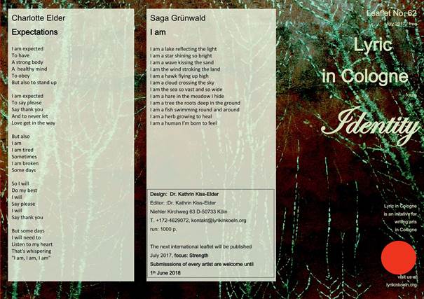 die neue Lyrik in Köln ist da – unsere englische Nummer mit dem Schwerpunkt „Identity“. Identität ist für mich als Psychologin so ein wichtiges Thema, es war außergewöhnlich bereichernd, Ihre und Eure unterschiedlichen poetischen Einsichten zu erfahren – und, leider – wie immer auch auswählen zu müssen.