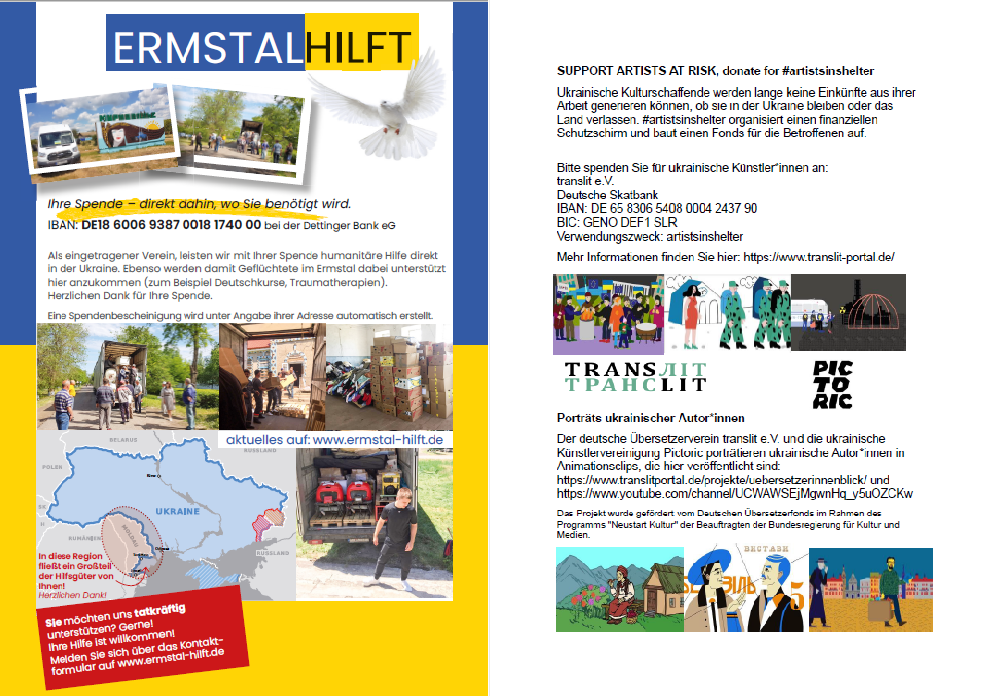 Wie versprochen haben wir aus den Einnahmen für die Doppelausgabe je 100 Euro (1 Euro je verkaufte Ausgabe) gespendet an: