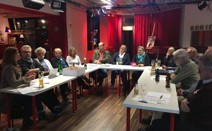 Harald Hug vom Kulturforum legte nach der ersten Runde dar, „dass das Kulturforum unbedingt eine kurzfristige Hilfe benötigt“. Zu den laufenden Kosten aus Miete und Nebenkosten von ca. 20.000 Euro käme der nötige Erwerb der Medien- und Tagungstechnik hinzu, die von Petra Zecher für um die 10.000 Euro gekauft werden müssten. „Durch Eigenmittel können wir 10.000 Euro aus Mitgliedsbeiträgen und Veranstaltungen einnehmen, aber die Vereine und Initiativen haben in der Regel keine Möglichkeit, einen Beitrag für ihre Veranstaltungen aufzubringen!“ Er habe die Lage dem Kulturamt der Stadt, dem Oberbürgermeister Dr. Fiedler und den Vorsitzenden der Gemeindefraktionen klar geschildert und einen Wirtschaftsplan des Kulturforums für das laufende Jahr und das Jahr 2020 übergeben.