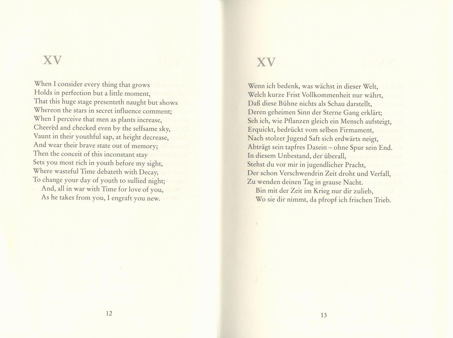 Dem Text beigegeben ist ein kleines Beispiel der Übertragungskunst des 1999 leider verstorbenen Tübinger Anglisten Paul Hoffmann abgebildet. Der Leser kann versichert sein, dass die anderen 29 Sonette ähnlich überzeugend ins Deutsche der Istzeit quasi „umgesetzt“ sind.